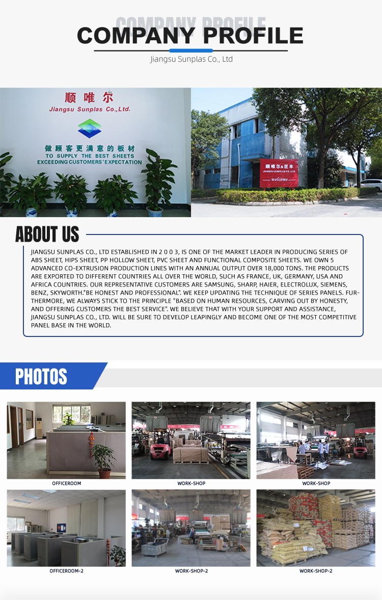 常州順唯爾材料科技有限公司成立于2003年,是生產(chǎn)ABS板材、HIPS板材、PP中空板材、PVC板材、功能復合板材等系列產(chǎn)品的市場leader之一。